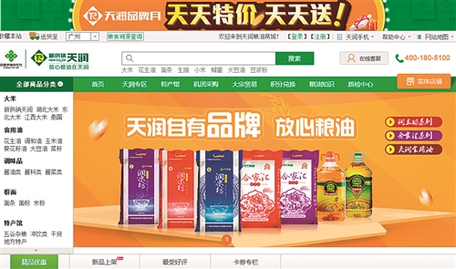 线上“多线”并行。围绕粮油、农特产品等发展优质垂直类营销,辟有天润专区、特产馆、大宗贸易、积分兑换、粮油知识、质检中心等板块,直营门店、实时行情在线上也一目了然。除了主打的天润自有品牌系列放心粮油外,还引进北大荒、中粮等优质品牌。“以微信公众号中的微商城为主打,配合官方网站进行线上销售,采用微商等新型营销方式,开展‘天润品牌月’等特色促销活动,并与天猫、京东到家等第三方平台进行合作。其中,与京东到家的合作到目前已覆盖了广东新供销天润位于广州的24家直营店,每日下单率正稳步提升。”黄江华介绍。