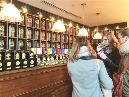 这家店装潢新颖,颜色艳丽。店员表示,来这里买茶的人平均年龄较小,所以果茶一直有着居高不下的销量。这家店的茶叶来源均取自斯里兰卡,价位在每小罐120人民币。记者随机采访了店内购茶的金发女孩,她来自德国,是来卢浮宫参观,并慕名帮朋友带些茶叶回家,当记者提到中国茶时,她表示没有品尝过,不过希望有机会到中国试一试。