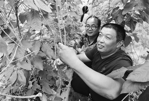 8月17日,河北省石家庄新乐市小流村国锋西瓜合作的技术人员正在和社员一起查看瓜菜长势。近年来,新乐市积极鼓励和引导农民进行大棚瓜菜大棚种植,并采用瓜菜套种、三茬三收等种植技术,提高了大棚种植效益。截至目前,全市大棚瓜菜种植面积达8万多亩,亩纯收入在1万元以上,让农民走上了致富路。