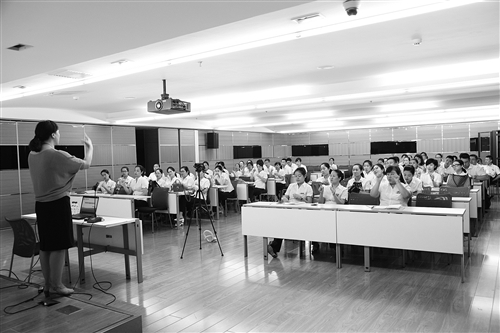 本次培训聘请了长春大学刘海涵教授授课。培训中,刘海涵结合日常交流、业务咨询、营销推介、服务管理等环节的常用手语进行细致的讲解和示范。培训现场气氛活跃,刘海涵通过与员工手语互动交流的方式,带动大家一起练习和巩固。王祎宁 摄