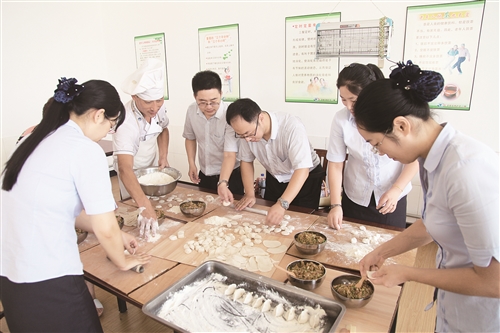 活动当天青年员工们为老人们奉献了一场精彩的视觉盛宴。与文艺汇演同步开始的还有为老人做午饭环节,青年员工走进养老院餐厅,与餐厅人员一起为150余名老人包饺子,共进午饭。