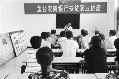 山东鱼台农村商业银行积极引导罗屯镇罡上村贫困户、种植户改种经济效益高的辣椒、甜瓜、大蒜等农作物,由于贫困户缺乏种植技术,该行邀请金乡县农业局农业专家李桂民教授开展扶贫农业讲座。上图为李桂民深入田间地头,现场为村民指出种植过程中存在的问题。右图为李桂民为村民讲述辣椒、甜瓜种植中的误区、蔬菜大棚的管理、新品种的培育、蔬菜品种价格变动与避险等知识。张庆光 吴玉露 摄