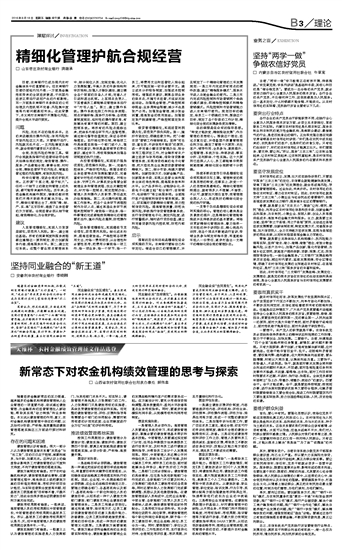 新常态下对农金机构绩效管理的思考与探索