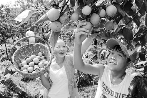 今年该县的5万亩柿子获得大丰收,县、乡政府把解决农副产品销售难作为扶贫的重要手段,完善了道路、水利等基础设施,和周边的景点打包宣传推介,大力发展观光农业,吸引游客“在家没事干出来找柿吃”,走进柿子园体验劳动的快乐,往年滞销的柿子销售火爆,果农的收入提升2成以上。张中立 摄 (cnsphoto供图)