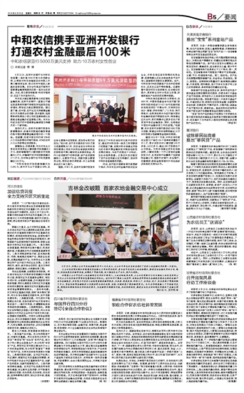 中和农信携手亚洲开发银行 打通农村金融最后100米