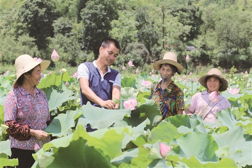 8月21日,江西省遂川县碧洲镇宏山乡村种荷能手王头生正在基地给乡亲传授管护荷花技术。近年来,遂川县一批种养大户自发加入传技帮困的行列,目前已有600多户农村种养大户把自己发家致富的本领无偿传授给贫困群众,帮助4000多户困难家庭脱贫。 李建平 摄