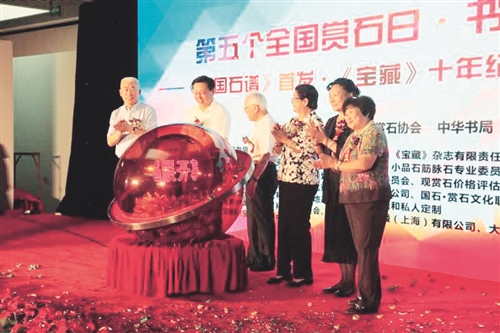 本报讯(记者 安明霞) 8月30日上午,第五个全国赏石日·书香赏石——《中国石谱》首发·《宝藏》十年纪念·赏石精品展活动在北京中国国际展览中心盛大开幕。