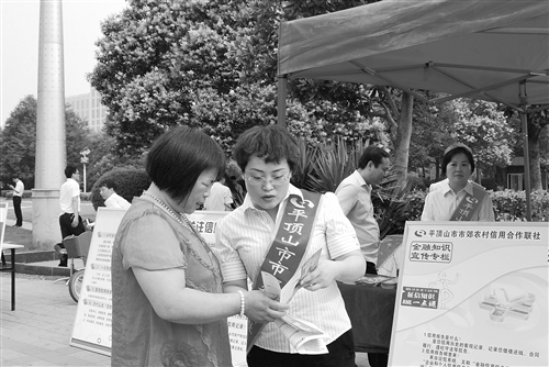 为进一步向社会公众普及征信知识,推进社会信用体系建设,河南省平顶山市市郊农村信用合作联社组织辖内54个营业网点同时开展征信集中宣传活动。同时,该联社还积极参与市政府组织的以“珍爱信用记录从关注信用报告开始”为主题的大型专场宣传活动,并由该联社主任、副主任亲自带队参加宣传活动。活动当日,该联社共发放宣传资料近3000份,解答征信知识、农信社业务问题1000余人次。活动的开展,对于向社会公众普及征信业务知识,提高公众信用意识,宣传、促进社会信用体系建设起到了积极作用。王 芳 王 彬 摄