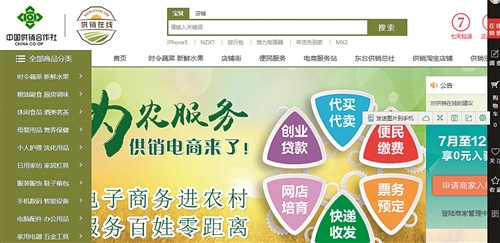 老供销接轨“互联网+”,东台市社初步形成了市有电子商务公司、镇有特色网店、村有电商服务站的三级电子商务网络体系与龙头企业电商化改造比翼双飞的发展格局。