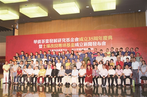 本报讯(记者 安明霞)9月11日,华侨茶业发展研究基金会成立35周年庆典活动在广东珠海举行,华侨茶业发展研究基金会六届三次理事会同时举行。以本次庆典为契机,华侨茶业发展研究基金会土壤改良专项基金正式设立。华茶基金会专家指导委员会专家、财政部原部长项怀诚,华茶基金会专家指导委员会专家、国家人社部原副部长刘雅芝,中国第一艘载人飞船神舟5号火箭系统总指挥黄春平,农业部种植业管理司耕地与肥料管理处副处长徐晶莹,华侨茶业发展研究基金会理事长邵曙光,海峡两岸茶业交流协会副会长朱永康,粤港澳福建商会理事长、广东东方翠健康科技有限公司董事长林椎等领导及各地茶业组织、企业和媒体朋友等300余人出席了发布会。