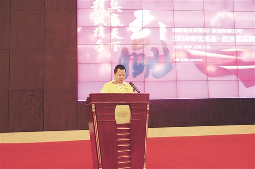 安化黑茶是现代养生的一个代名词,同时也是湖南文化的一个缩影,而白沙溪正是安化黑茶的一个代表性符号,作为一名白沙溪人,我很荣幸也很自豪,我们深感责任与力量,未来我们充满着信心。在张家界这个世界级的窗口下,向大家推介世界级的中国黑茶白沙溪,我们扎根大山里,服务全世界。