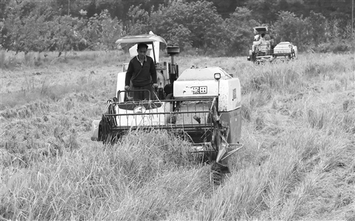 9月14日,四川省遂宁市射洪县太乙镇任家沟村,海阔农机专业合作社农机手正在帮助贫困户冒雨免费抢收制种水稻。射洪县海阔农机专业合作社由遂宁市射洪县太乙镇任家沟村党支部书记刘海和5名党员联合发起成立的,专门服务本地农户,调整农业产业结构,采取成本价或免费的形式,帮助缺劳户和贫困户发展农业生产,脱贫致富奔小康。钟 敏 摄(cnsphoto供图)