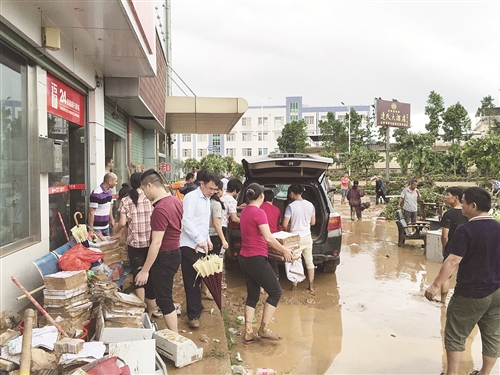 受灾网点化言于行。铲除淤泥、清洗地板点、整理凭证、维修更换设备……全员行动,分工明确,争分夺秒,让营业网点恢复一新。