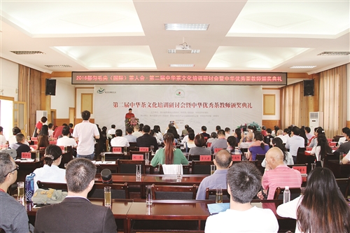 本报讯 (记者 冯斯正)9月22日—23日,第二届中华茶文化培训研讨会暨中华优秀茶教师颁奖典礼在贵州黔南州都匀市举行。本次活动由贵州省黔南州人民政府、中华茶人联谊会、中华合作时报社联合主办,都匀市人民政府、黔南州茶叶产业化发展管理办公室、《中华合作时报·茶周刊》共同承办。主、承办单位领导,贵州省、黔南州、都匀市相关部门领导,2014、2016两届中华优秀茶教师评审委员会成员,两届“中华优秀茶教师”获奖者,来自黔南州涉茶学校黔南师院、黔南职院、贵州省内贸学校的茶教育工作者以及新闻媒体朋友,齐聚都匀。本次活动对第二届“中华优秀茶教师”获得者予以表彰,并就茶行业人才教育和茶文化推广传播等话题进行了研讨。
