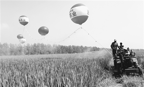 近期,安徽省庐江县惠阳科技公司研发制成“氢气球式”喷药机,并成功投入使用。据了解,“氢气球式”喷药机每台套仅需成本5000元左右,由农机载运农药水剂并以农机自身动力增压喷雾,喷头可根据田块长度自行调节,正常天时防治量为每天可达1500至2000亩,且3至5人便可进行操作,避免了以往操作人员直接接触药剂和人工伤苗等情形的出现,提升了工作效率,同时,大节约了农药成本,提高水稻的产出量。
