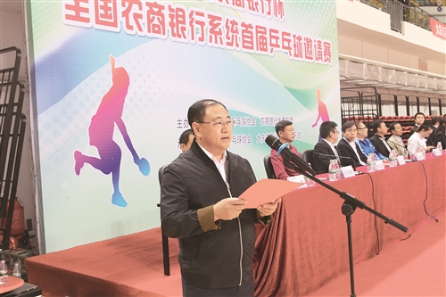 农商银行发展联盟秘书长吴红军在致辞中表示,本届全国农商银行系统首届乒乓球邀请赛,得到了中国金融工会及中国金鹰体协的大力支持,中国金融乒协与联盟共同担当主办单位,旨在为会员单位农商银行之间的交流与合作搭建密切的桥梁,是属于农商银行人自己的体育盛会,是会员单位农商银行共叙友情、共享发展的节日庆典。