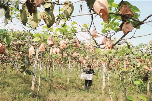 10月5日,四川省内江市东兴区石子镇七星村猕猴桃种植户在采摘黄心猕猴桃。东兴区积极依托农民专业合作社,在七星村大力发展黄心猕猴桃,为贫困户脱贫增收及当地农民致富拓宽了道路。李建明 摄