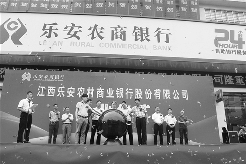 9月22日,江西乐安农村商业银行正式挂牌开业。江西省乐安县银监办主任黄辉明宣读了《江西银监局关于江西乐安农村商业银行股份有限公司开业的批复》,并为乐安农商银行颁发了金融许可证。乐安县委、县政府、抚州辖区党组、县人行、县银监等领导共同为乐安农商银行启动了开业球。该行将继续发挥好农村金融主力军作用,一如继往地服务“三农”和中小微企业,坚持支农支小,精准扶贫,创新发行各种理财、基金、债券、贵金属等产品,做实普惠制金融,做当地人民自己的银行和百姓心中最满意的银行。