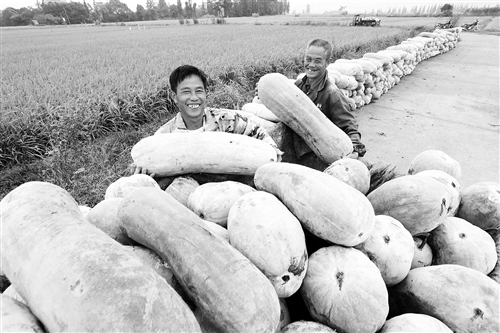 江西省东乡县虎圩乡坎头村饶家小组30多户基本上都种冬瓜,少的一两亩,多的十来亩,种植总面积达100多亩,年产冬瓜1000多吨,村民户均年收入3万元以上,让小小的村庄成为远近闻名的“冬瓜村”。 跟其它村“自采自家果”做法不同的是,当地农民自发组成“劳动互助组”,他们农闲帮农忙,农忙互相帮,不仅抢抓农时,快乐农忙,还增进了邻里关系。图为10月24日,农户在田地里采收冬瓜。何江华 摄(cnsphoto供图)