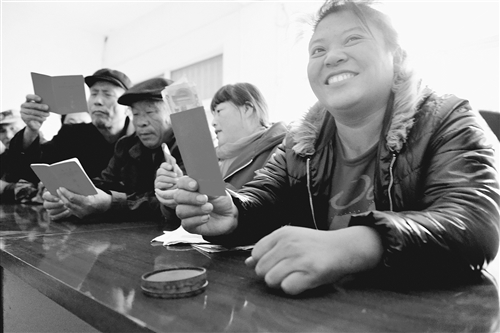11月1日,在山东省茌平县贾寨镇耿店村,两名村民领到了自己的合作社分红股息。当日,贾寨镇绿冠蔬菜农民种植专业合作社2016年分红开始,合作社育苗场、合作社蔬菜批发市场、合作社在2016年又取得了较好的经济效益,合作社326户社员分红35万元。茌平县贾寨镇绿冠蔬菜合作社自2008年成立以来,合作社育苗场、合作社、蔬菜市场每年经济效益持续增长,截至目前,合作社已发展社员326户,带动农民5000多户,入社资金500万元,年蔬菜种植面积过万亩。社员年人均增收3000多元。赵玉国 摄(cnsphoto 供图)