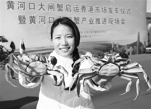 11月1日,黄河口大闸蟹启运香港市场发车仪式在位于东营市现代畜牧业示范区的黄河口大闸蟹产业示范区举行。东营市规划建设黄河口大闸蟹养殖示范区,养殖的大闸蟹以其良好的品质得到香港客商的青睐,现已与香港老三阳贸易公司达成协议并举行首批供货发车仪式,除销往香港、澳门市场外,还出口新加坡、韩国等。黄河口大闸蟹产业已成为促进当地渔民增收的重要产业。周广学 摄 (cnsphoto供图)