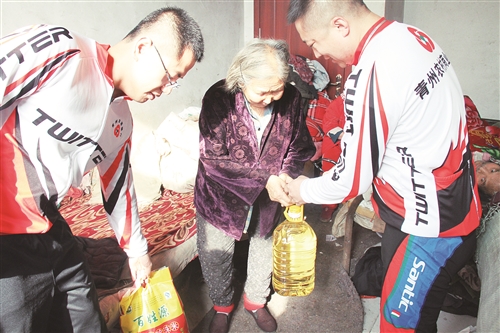 近日,山东青州农村商业银行工会骑行俱乐部成员来到口埠村,看望了村里的孤寡老人,为他们送去了大米、面粉、花生油等慰问品,帮助他们进一步改善生活条件,让他们感受到来自社会的关怀和温暖。