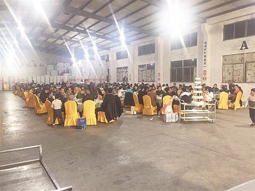 精美的菜肴,专业的服务,热烈而有序的场面,是11月13日中午在兴化市竹泓镇荣腾化纤有限公司一幢宽敞的厂房里一场贺寿家宴的场景。与以往传统家宴服务不同,此次家宴服务中使用的是专用厨房、专业厨师、专门服务员,全程专业化一条龙服务。