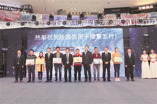 本次首发的桂盛信用卡分标准信用卡和易系列卡两个品种,能满足不同客户群体的日常消费需求以及消费贷款需求。V盾手机银行不仅转账免手续费,单笔和日累计的转账额度分别是普通手机银行的100倍和40倍,满足了个人和企业进行大额资金周转的实时支付需求。“e挎包”移动银行传承了农信社60多年的“挎包精神”,不受空间限制,可离柜为客户现场办理借记卡、信用卡申请、网上银行等业务,为广大客户零距离提供优质的个性化金融服务。