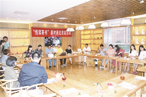 16日晚,由著名茶文化专家余悦主讲的“悦读茶书会面对面”在北京马连道百茶研究院举行。全场来自广东、江西、河北、北京的30余位各行各业的爱茶人士齐聚一堂,品茶听讲,茗香书香清雅一室。余悦老师围绕“国家开放大学茶文化专业教材之《中华茶艺》、《茶文化概论》、《中国茶文化史》”等8本书,和参与读书会的茶友们分享。