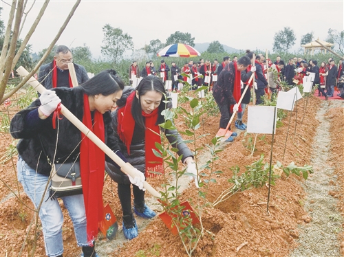 据六妙茶企相关负责人称,建成后的品种园,一方面将作为生态旅游观光景点,另一方面也将作为茶叶良种繁育的“试验田”与“资源库”。(题图为大家将茶树移植到品种园中。)