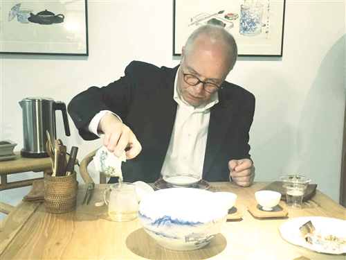 盖哈特首先是个勤奋的人。景德镇之行同行的几天,记者与盖哈特同住一屋,发现他非常勤奋,很晚了还在电脑上处理工作,次日起床第一件事就是回复邮件。大卫介绍说,中心成立后,盖哈特很忙,每天只有五六个小时的睡眠时间。但第二天,盖哈特还是会穿着汉服,为欧洲茶客主持中国茶沙龙。