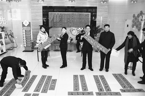 在新春佳节之际,山西泽州农商银行把金融扶贫与文化扶贫有机结合,与晋城市书法协会联合开展百名书法家下基层活动,从去年腊月二十三开始在45个营业网点,为基层群众免费书写对联,截至目前已送出20000余份。