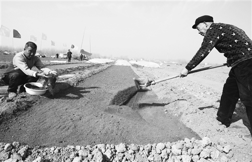 2月15日,在安徽蒙城县楚村镇楚店社区辣椒育苗基地,农民在技术人员的指导下忙着整地、施肥、撒种、浇水、喷洒除草剂、覆盖地膜等。辣椒种植作为县扶持规模化辣椒种植项目,县农业技术人员也将技术服务贯穿于辣椒种植的各个环节。