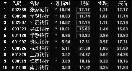2月13日,银行股再次井喷:张家港行、无锡银行、江阴银行、吴江银行、常熟银行5股涨停;贵阳银行、杭州银行、江苏银行、上海银行涨逾4%。