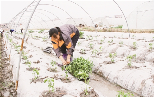 时下正值辣椒苗、茄子苗等蔬菜移栽的有利时机。3月1日,江西省遂川县泉江镇洋村菜农正在移栽辣椒苗,一派春耕繁忙景象。 李建平 摄