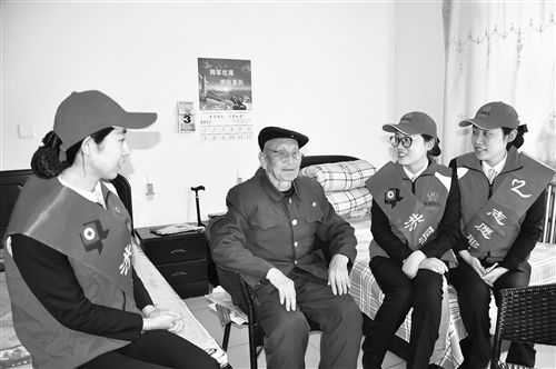 在“第54个学雷锋日”和“第18个中国青年志愿者服务日”活动来临之际,山西省洪洞县农村信用联社举办了“精准关爱 青春同行”学雷锋敬老院献爱心活动。由20名青年志愿者组成的学雷锋活动小组先后来到多家敬老院,开展志愿活动。志愿者们为老人送去了大米、面、油等慰问品,并帮助老人收拾房间,陪老人聊天。付华耀 摄