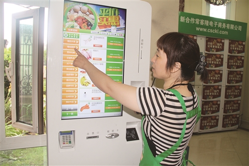 “这是我们自主研发的‘家易乐’终端,配上智能保鲜柜,放在小区里,居民从下单到取货都可以在家门口完成,非常方便。”江苏新合作常客隆连锁超市有限公司副总经理章伟伟介绍。一台触控一体机终端、两组智能保鲜柜,再加上一个现场客服,就构成了一个“家易乐”生鲜自提站,如果再加上农产品展示等功能的独立门店,就是一个社区e店。依托它们,“家易乐”的电商服务进社区已覆盖了常熟市区的70%。