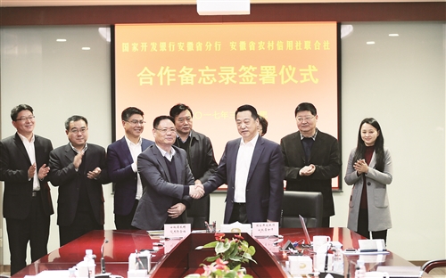 签字仪式上,陈鹏指出,安徽省联社高度重视与国开行的业务合作,特别是近两年来,双方保持了比较密切的联系沟通,取得了明显的合作成效。下一步,要结合双方特点,将农商银行系统在普惠金融服务方面的优势和国家开发银行在政策性金融服务方面的优势对接好,取长补短,在探索普惠金融与政策性金融可持续的有效合作途径上加大力度,共同抓好金融扶贫重点区域开发,研究创新相关金融产品,为促进全省经济发展、建设美丽安徽提供更好的金融支撑和金融服务。