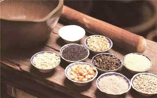 擂茶的工具主要是擂钵和配套的擂棍,擂钵要用上好的陶土烧制,擂棍须用茶树制成,这样的木材有一一股淡淡的清香,用来研制擂茶,冲泡出来别有风味。擂茶时,先将配制好的原料放进擂钵里,加少许山泉水,两手握住擂棍,沿着钵壁有节奏地旋转研磨,待钵内的原料被擂成细浆后,将滚烫的开水缓缓倒入冲泡,再用笊篱滤去渣滓,反复研磨两到三次,一钵香喷喷的擂茶就制成了。