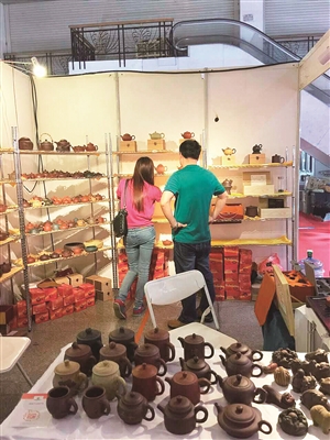 | 2017年4月7日,珠海茶博会开幕。来自中国“陶都”——江苏宜兴的徐舍供销合作社,在其紫砂壶展位上集中展示了当地合作社生产的茶壶、茶叶,供销合作社主任还向客户讲解宜兴紫砂的特点、识别方法等,并重点推广宜兴红、绿茶。据悉,徐舍供销合作社去年成立了电子商务公司,帮助农户代卖农特产品,在做好网上生意的同时积极开展多方位营销,千方百计为农户打开销量。这 |