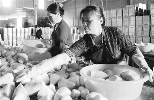 4月9日,江西省遂川县堆子前镇笋罐头加工企业工人们正在忙碌加工春笋等级出口。近年来,遂川县得益于当地土壤、气候等环境条件良好,按照“公司+基地(专业合作社)+农户”的模式,执行绿色食品种植规范,大力发展深加工竹笋产业,生产的竹笋罐头、清水竹笋产品不仅风靡国内市场,还出口日韩、东南亚等10余个国家,成为农民增收的一项特色产业。 李建平 刘名龙 摄