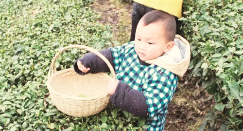 3月17日,记者随《中国茶叶公园》标准起草专家组,来到湖北宜昌五峰土家族自治县调研。五峰县位于湖北西南部,是著名的宜红产地,采花毛尖远近驰名。第二天上午,当调研小组来到青岗岭连片茶园考察时,在路边的茶园里发现了这对在采茶的母子。尤其是杨俊杰才三岁,穿着厚厚的棉衣,提着竹篮子,有模有样地采茶,一下子吸引了大家。估计大家伙的围观和拍照会打扰到他,但他很淡定,边采茶,边跟我们说话。