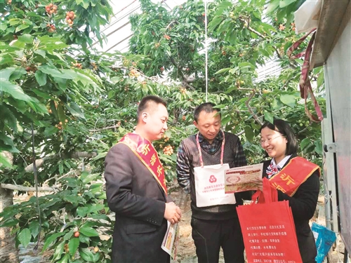 山东沂源农商银行员工利用周末休息时间为燕崖镇的130余个大棚送去了特别定制的樱桃采摘袋,并送上了农忙时节的慰问。本次活动共分3个小组,划片区进行发放,力争让每一户大棚用上布料柔软、携带方便的采摘袋。近年来,该行致力于支持现代农业,为当地农业经济发展献出了一份力量。黄现娟 摄