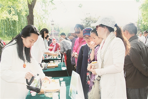 本届春茶节以“茶为国饮、品味茶香”为主题,聚合了京城张一元、吴裕泰等著名茶企和外埠进京的四川川茶集团、福建春伦茶业等知名品牌,阵容强大。获得“质量合格、质价相符”的产品在大观园内将持续3天的展售,所有进入大观园内的游客均可免费品饮本届春茶节“质量合格、质价相符”获奖产品。