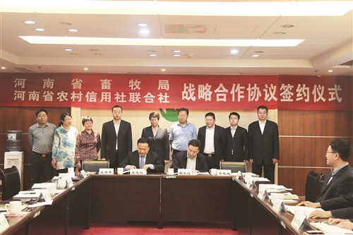 5月3日,河南省农村信用社联合社与河南省畜牧局举行战略合作协议签约仪式。河南省联社副主任、党委委员李志刚,河南省畜牧局副局长周辰良出席签约仪式并致辞。