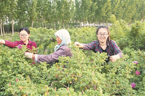 5月初,山东省淄博市高青县花沟镇大庄村300多亩的玫瑰园进入鲜花采摘季,每名采摘工能赚2000元左右。预计今年可采摘鲜花35万斤,村民工资性收入可增加40多万元。