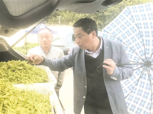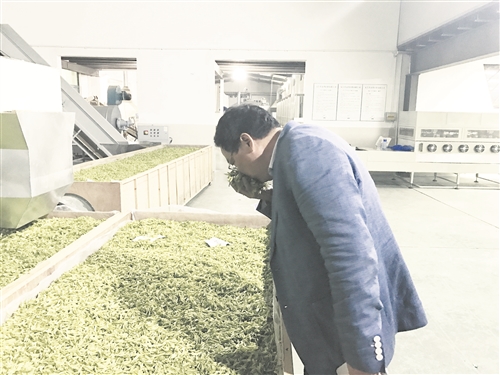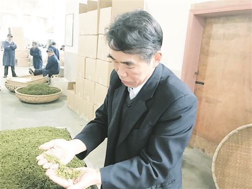 陈林回忆着这段往事,满脸笑意地走进千道湾生产车间,开始检查鲜叶的杀青程度。他说,要做出好茶叶,杀青十分关键。他传授给记者一个检查杀青到位与否的小窍门:抓起鲜叶,在手中用力握成一个团,慢慢放开,鲜叶散开,则说明杀青到位。当然这只是初步判断的方法,如果遇到下雨,就要考验制茶人的经验和技术了。