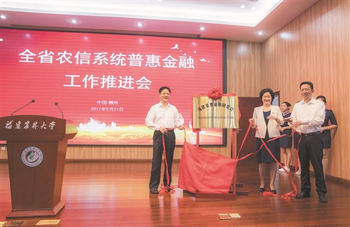 会上举行了福建普惠金融研究院揭牌仪式,张志南常务副省长和福建农林大学党委书记叶辉玲、福建省联社党委书记余军共同为福建普惠金融研究院揭牌。