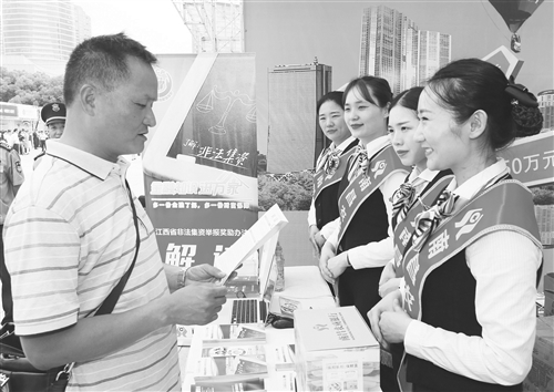 近日,江西省“防范非法集资、普及金融知识、维护金融稳定”大型集中宣传日活动在南昌市红谷滩新区举行。活动现场,南昌农商银行通过设置宣传展板、播放公益广告片、发放宣传手册、提供现场咨询、赠送宣传品等方式,宣传非法集资的概念、危害、识别方法和举报途径,普及安全使用银行卡、银行理财等金融知识。
