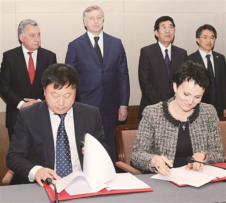 图2为珲春农商银行董事长李鹰与俄罗斯滨海商业银行签订战略合作协议。